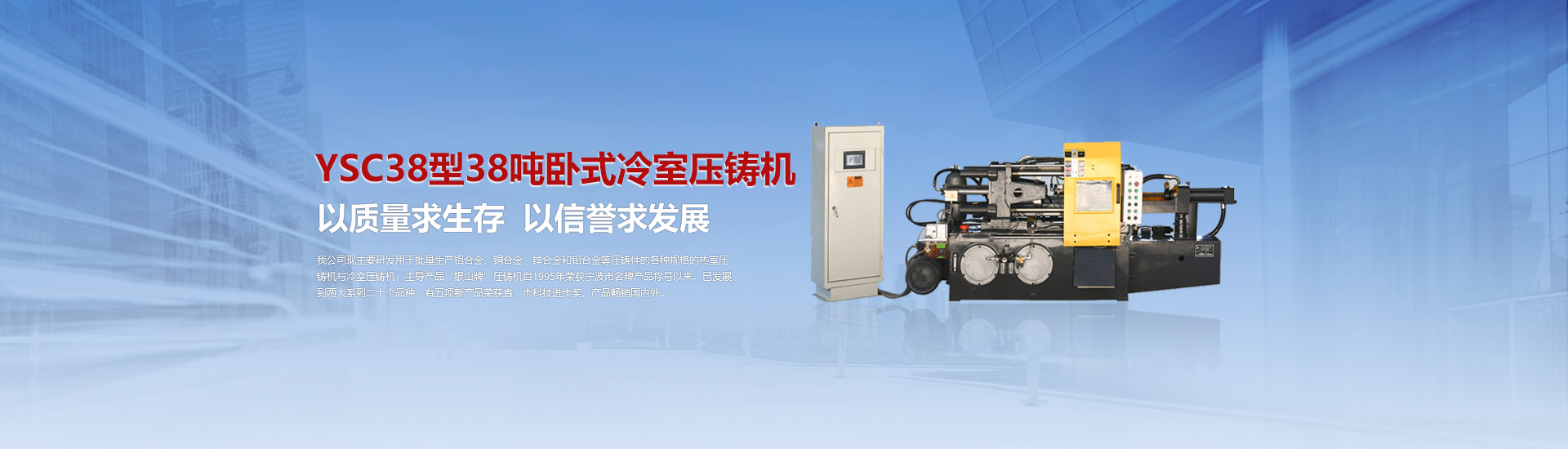 我司現(xiàn)主要研發(fā)用于批量加工生產(chǎn)鋁合金、銅合金、鋅合金和鉛合金等壓鑄件的各種型號(hào)規(guī)格的熱室/冷室壓鑄機(jī),主導(dǎo)產(chǎn)品“銀山牌”壓鑄機(jī)自1995年榮獲寧波市名牌產(chǎn)品稱號(hào)以來,已發(fā)展到兩大系列二十個(gè)品種,有五項(xiàng)產(chǎn)品曾榮獲省、市科技進(jìn)步獎(jiǎng),產(chǎn)品暢銷國(guó)內(nèi)外。歷年來向用戶提供了8000余臺(tái)設(shè)備,為中國(guó)的壓鑄工業(yè)發(fā)展作出了重要的貢獻(xiàn),企業(yè)獲得了很高的信譽(yù)度。